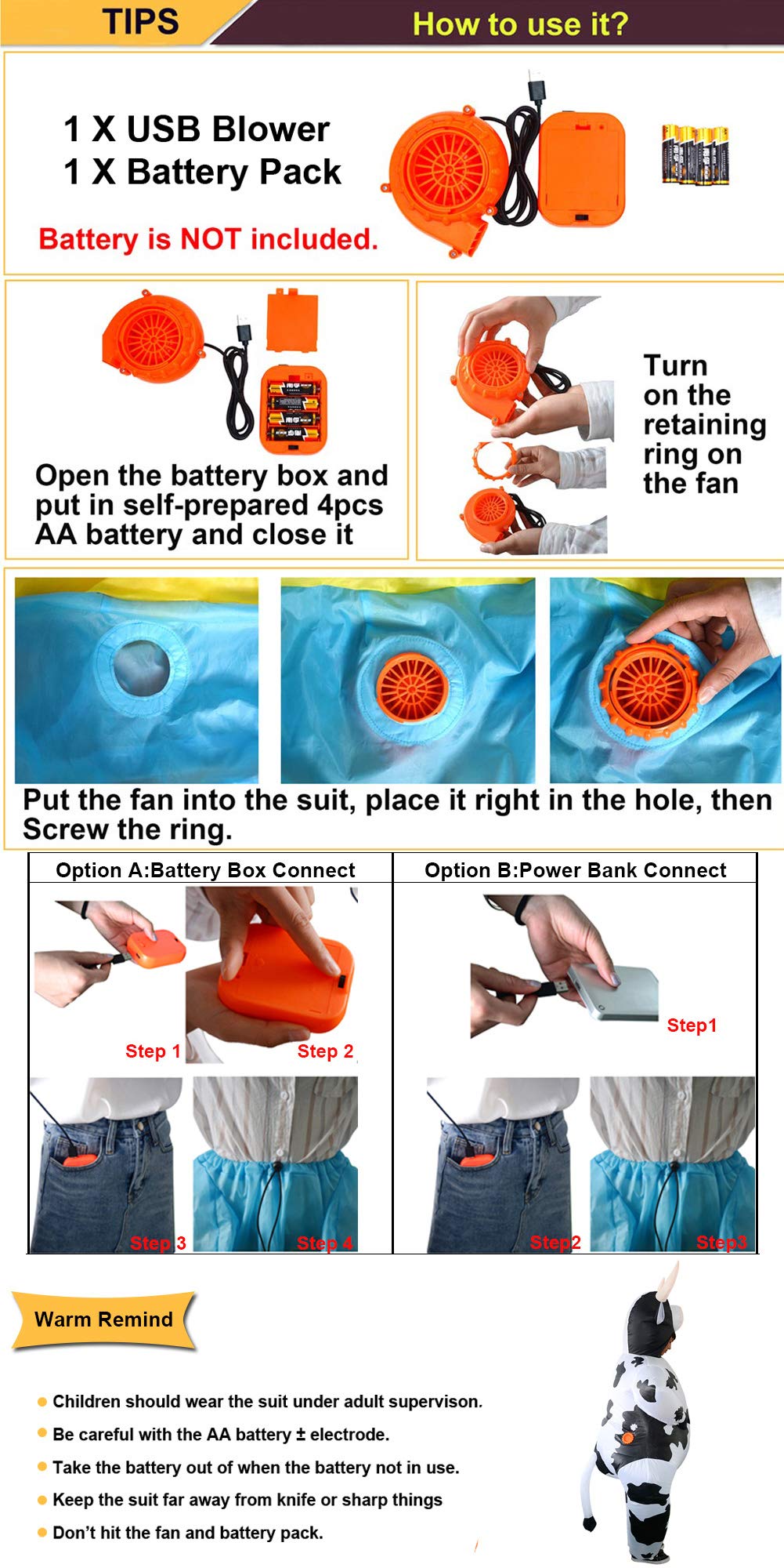 - USB fan design:requires 4 AA batteries and USB connected mobile power,faster and more convenience to use.